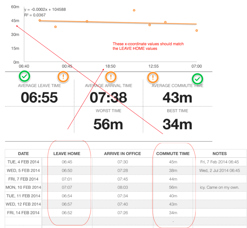 Using either or Badunit's or Jerry's suggestions removes the date difference from the plotted x values. You can also do that by re-entering all of the start and arrival times, and doing all of the new entries on the same calendar day.