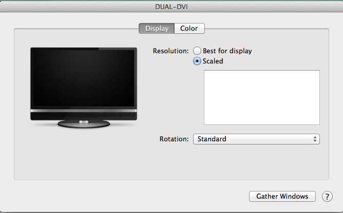 After running the 10.9.2 update, the system restarted then hung on the Apple Logo with the spinning lines in a circle for about an hour. I finally gave up and powered eveything down, unplugged all externals (display adapter, time machine drive, etc.) and restarted without a hitch. Powered down again, plugged everyting back in and powered up the external display before powering the iMac on. System starts normally but second display does not light up and the the system report is as shown. It sees something there, it just doesn't know what it is. I tried the mirroring checkbox and the iMac screen went dark. It wouldn't come back and just displayed a small white dot in the center. I restarted and zapped the PRAM (NVRAM) and it came back with mirroring off on the system preferences. One display shows up on the System preferences->Displays->Arrangement tab. Both displays show up on the System preferences->Displays->Display tab but the second display (Window shows DUAL-DVI in the title of the window) shows a dark screen and no brightness slider.