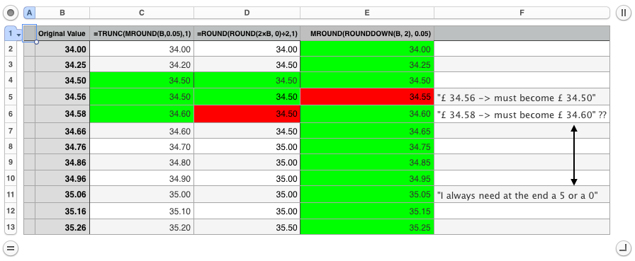 Secondly I work with the german version not in english. I have to translate the formulas. Question: where (which row) do I have to round? E11 or already E10 and what exact formula is it to put in? Thank you for you help
