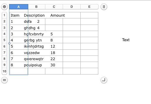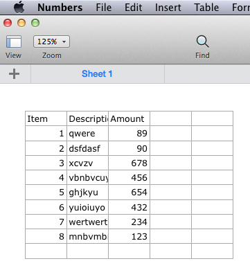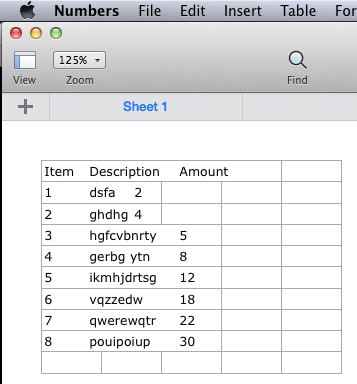 then I drop a file named CommaTest.csv, where the delimiter is a comma, onto the Numbers icon in the dock a new documnet appears and a table contains the data correctly.