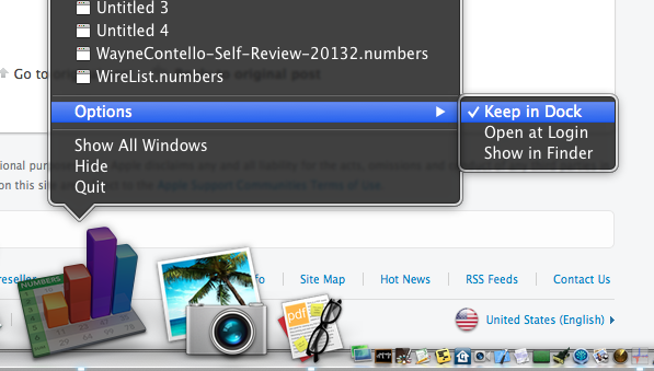 you can keep the Numebrs icon in the dock by clicking on the icon and holding until the contextual menu appears then select "Options > Keep in Dock":