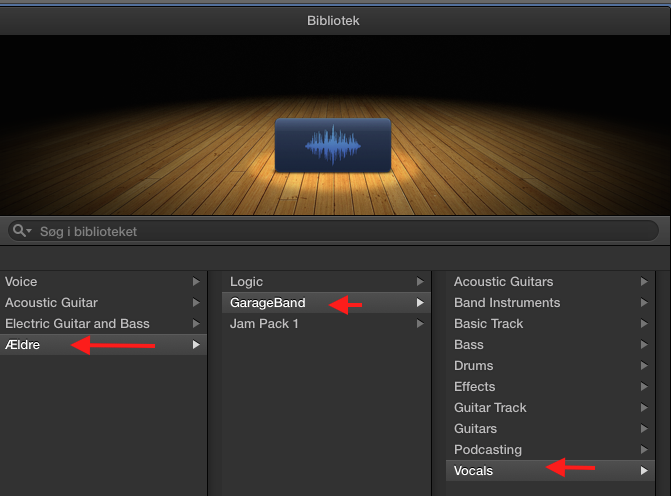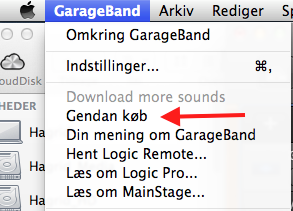 Use the "Gendan køb" command I have shown you above to activate the old GarageBand content: