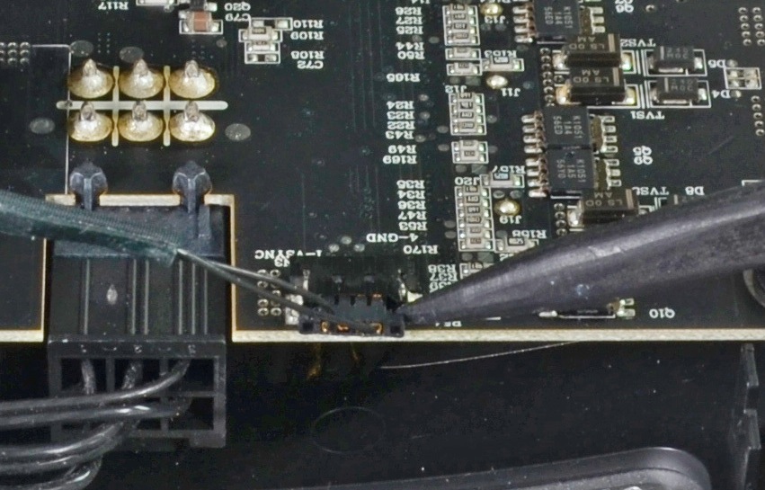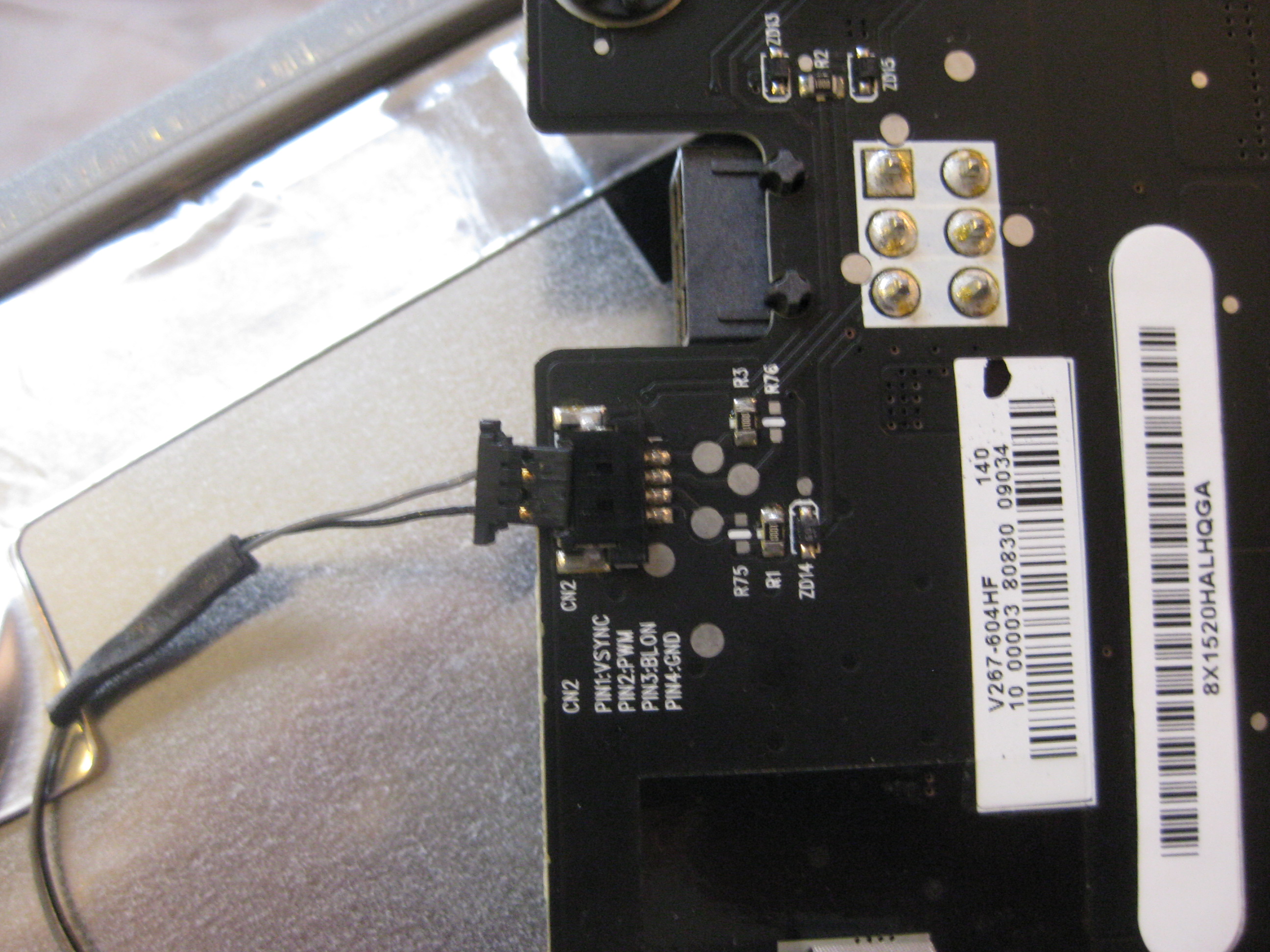 The 2wires (one grey, the other black), part of the "V-Sync/LCD Temp. Sensor Cable, has come out of the connector that connects to the LED Backlight Board.