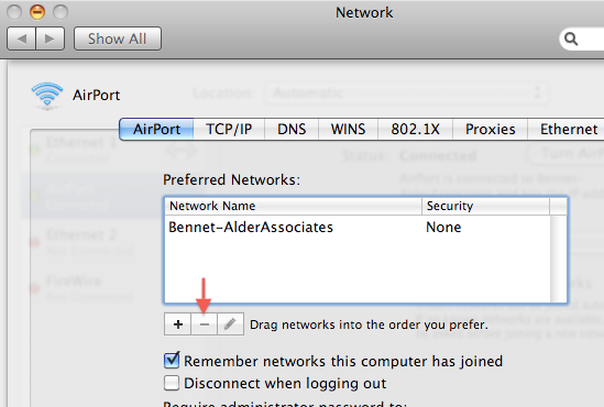 System preferences > WiFi/Airport > (Advanced) > | Airport/WiFi pane ...