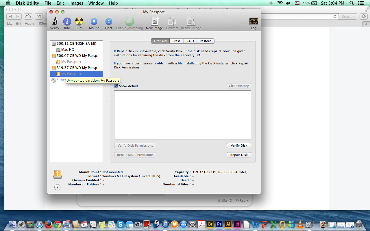 My Passport (disk2s1) <not mounted>: 319.37 GB