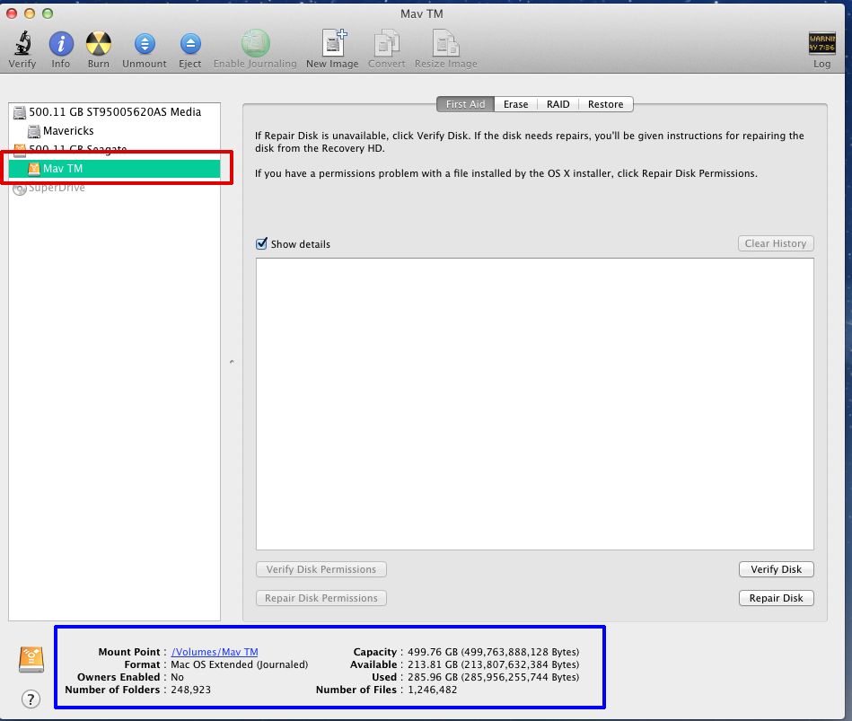 Mac HD (disk0s2) / [Startup]: 499.25 GB (342.1 GB free)