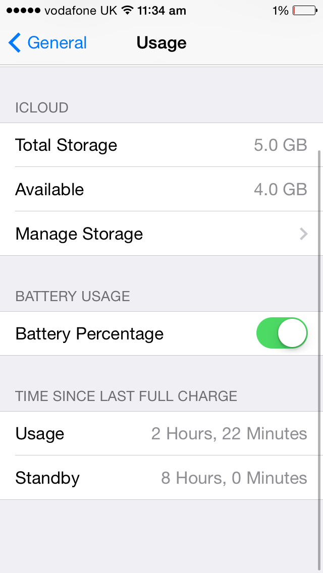 iPhone 5s, iOS 7.1, Battery life