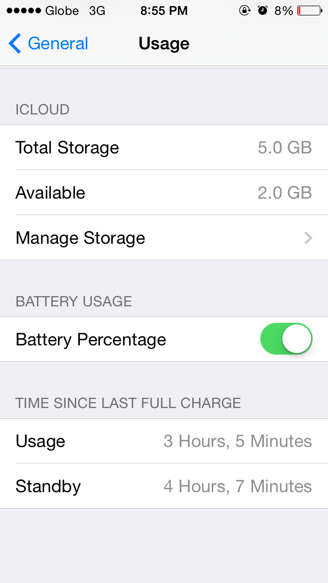 iPhone 5s, iOS 7.1, Battery life