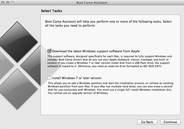 So here's where I'm stuck. The download windows support drivers from boot camp assistant does not work.. ever.. I've tried countless times. So i do some searching and find that I need BootCamp5.1.5640. Perfect. Found the file downloaded it and got it copied over to the USB flashdrive. I open bootcamp and click the last option to install windows from a disc. I have a full version of windows 7 on a disc not an upgrade. It takes me where it wants to partition the drive. As soon as I hit install it says. Windows support software not detected. I've tried unmounting and remounting.. I've tried keeping the flash drive out until the message displays then putting it in. I cant seem to make it work. No matter how many times I've verified the USB, done a repair through disk utility nothing works. Can someone PLEASE figure out how to get past this step of bootcamp!!
