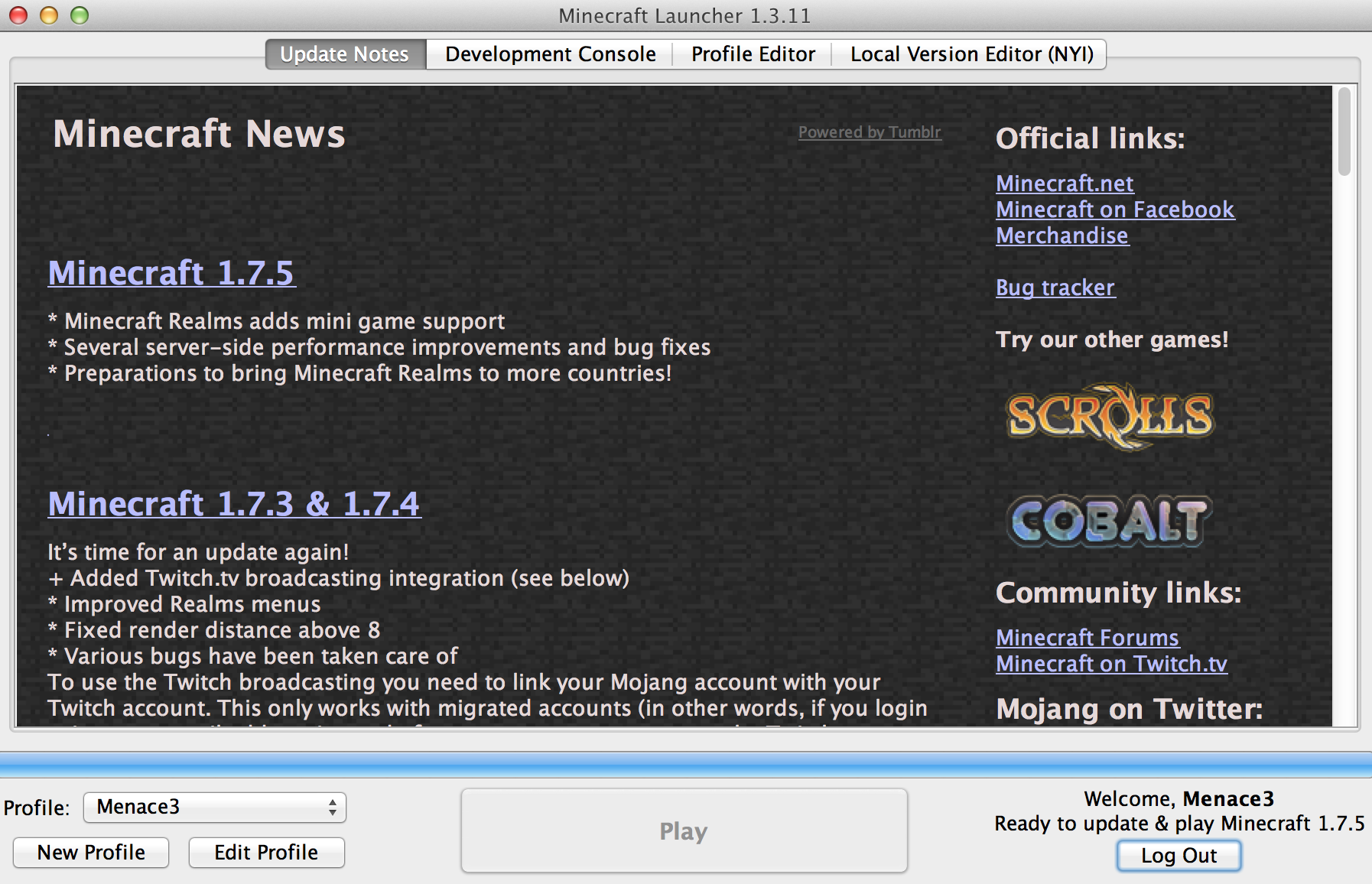 How can I get Minecraft onto my Macbook Pro? It is 15 inch Retina display, and it is Version 10.9.1 . I download the game, log in and press play, but as soon as it finishes loading, the blue bar goes away and nothing else happens! 😕