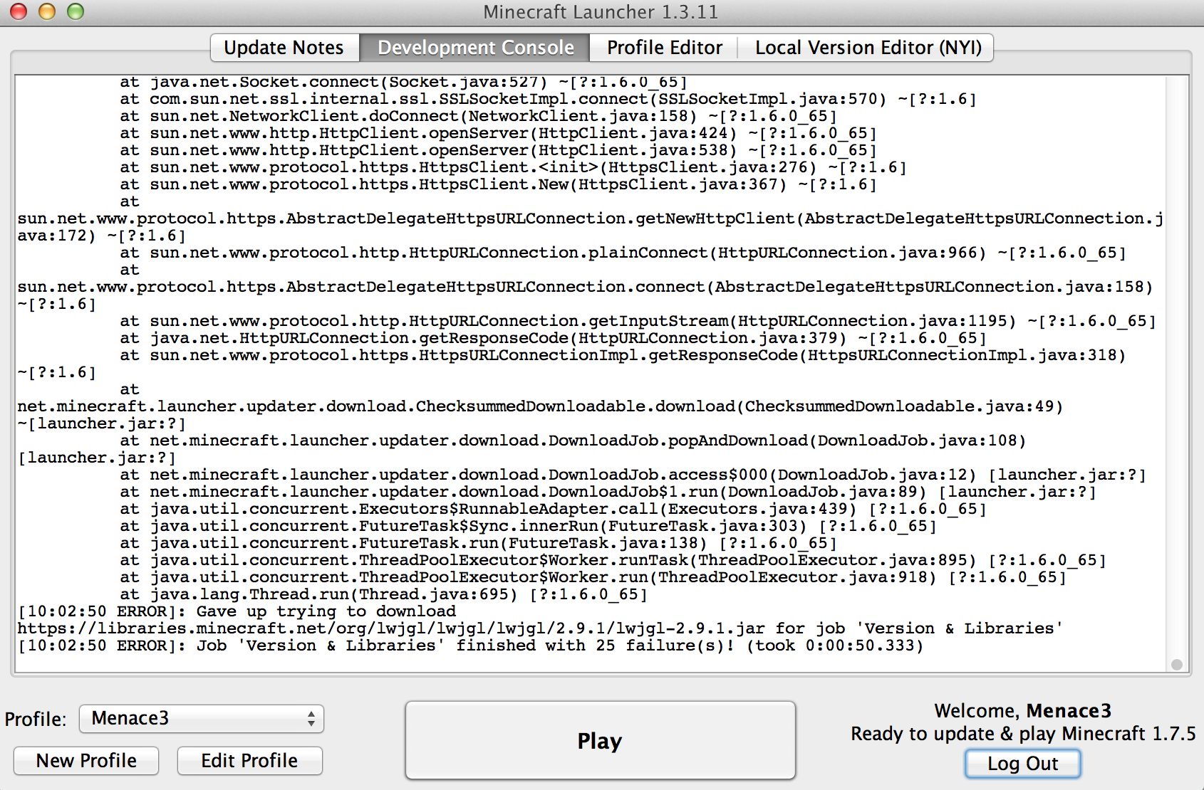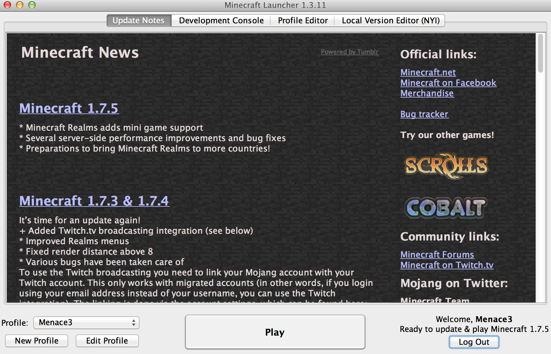 How can I get Minecraft onto my Macbook Pro? It is 15 inch Retina display, and it is Version 10.9.1 . I download the game, log in and press play, but as soon as it finishes loading, the blue bar goes away and nothing else happens! 😕