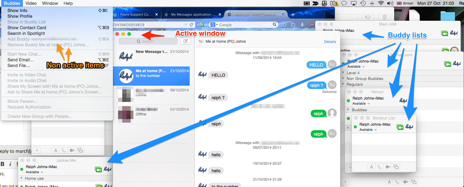 The other have Buddy Lists (Separate windows within Messages that can be displayed from the Window Menu)