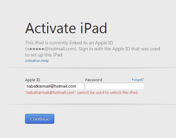 You seem to be very helpful on here, so I thought I would send a note. I too am having trouble activating my ipad. The thing is, the mini randomly had the "ipad is disabled" message yesterday even though my kids and wife swear that they didn't try to log in (with the wrong password). So I took steps to restore it - which was fine even though I don't have my usual sync computer here (I'm on vacation at a cottage and only have my wife's laptop). So I went through all the restore steps and saw that the ipad is restored, but on activation it says I can't use my own email to activate. The blanked-out email that it says is "currently linked to Apple ID" is my email address. When I try to sign in with that, it says I can't.