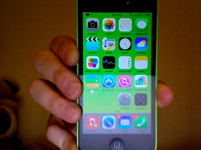 Hi, can anyone tell me why the home screen of my Iphone 5c is not completely green but it has a grey bar at the bottom where the most used tools are?