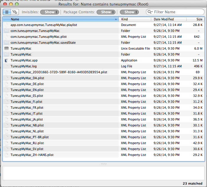 Use Easy Find or Find Any File. Search for "tuneupmymac" and "systweak" without the quotes. Let us know what all you found.