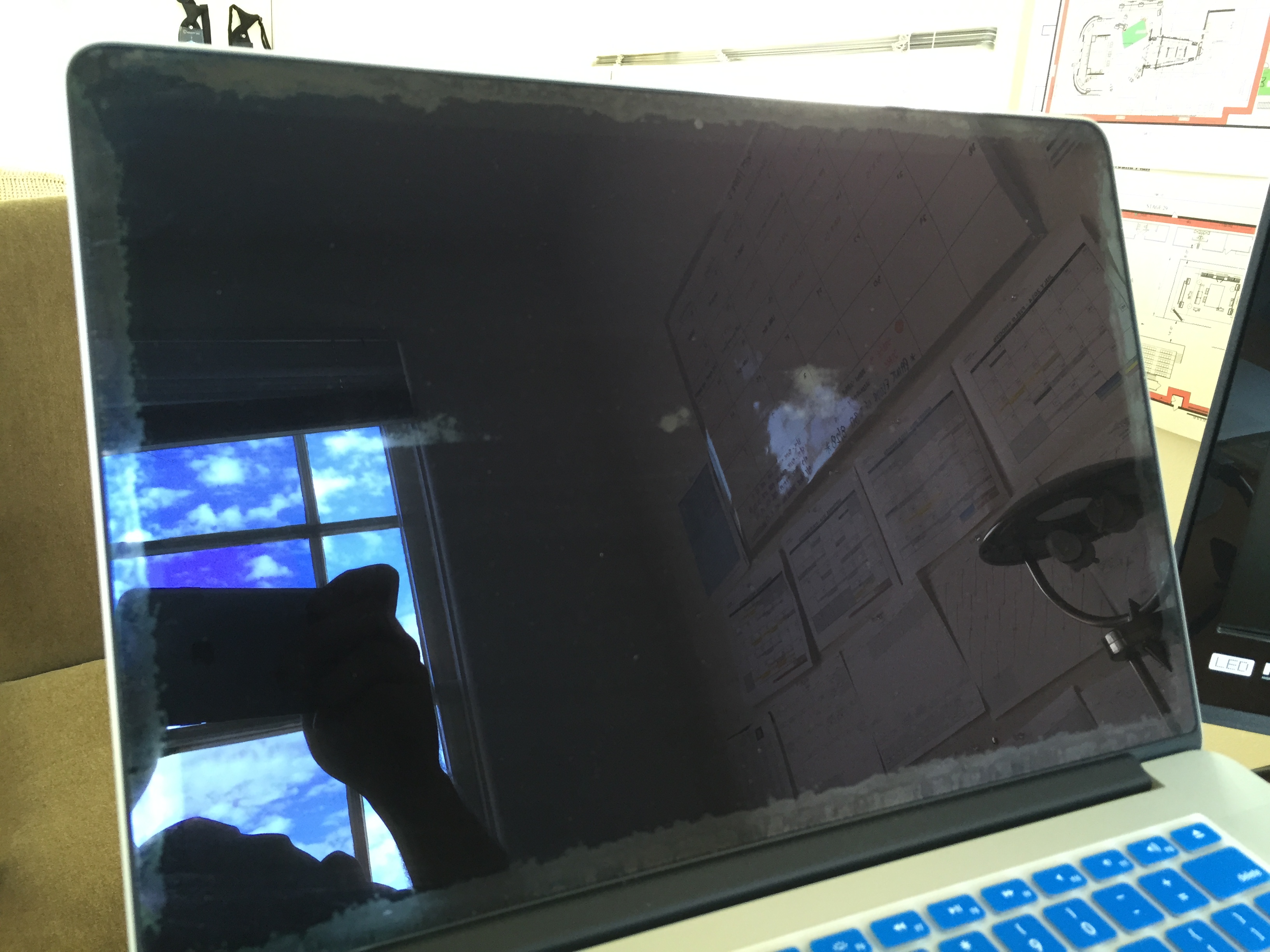 Ive seen this before many times. 9 times out of 10 its someone that has very acidic skin excretions left on the palm rests and keys that transfers to the screen, which THEN strips off the AR coating.