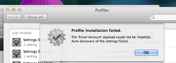 - In Profile Manager I removed the Mail payload all together and saved it. Well actually I hit the "-" sign in the Profile Manager next to the 'Settings for <user>''. But I only use one payload, so its fine for me. Then you cannot download the profile anymore, but that's ok.