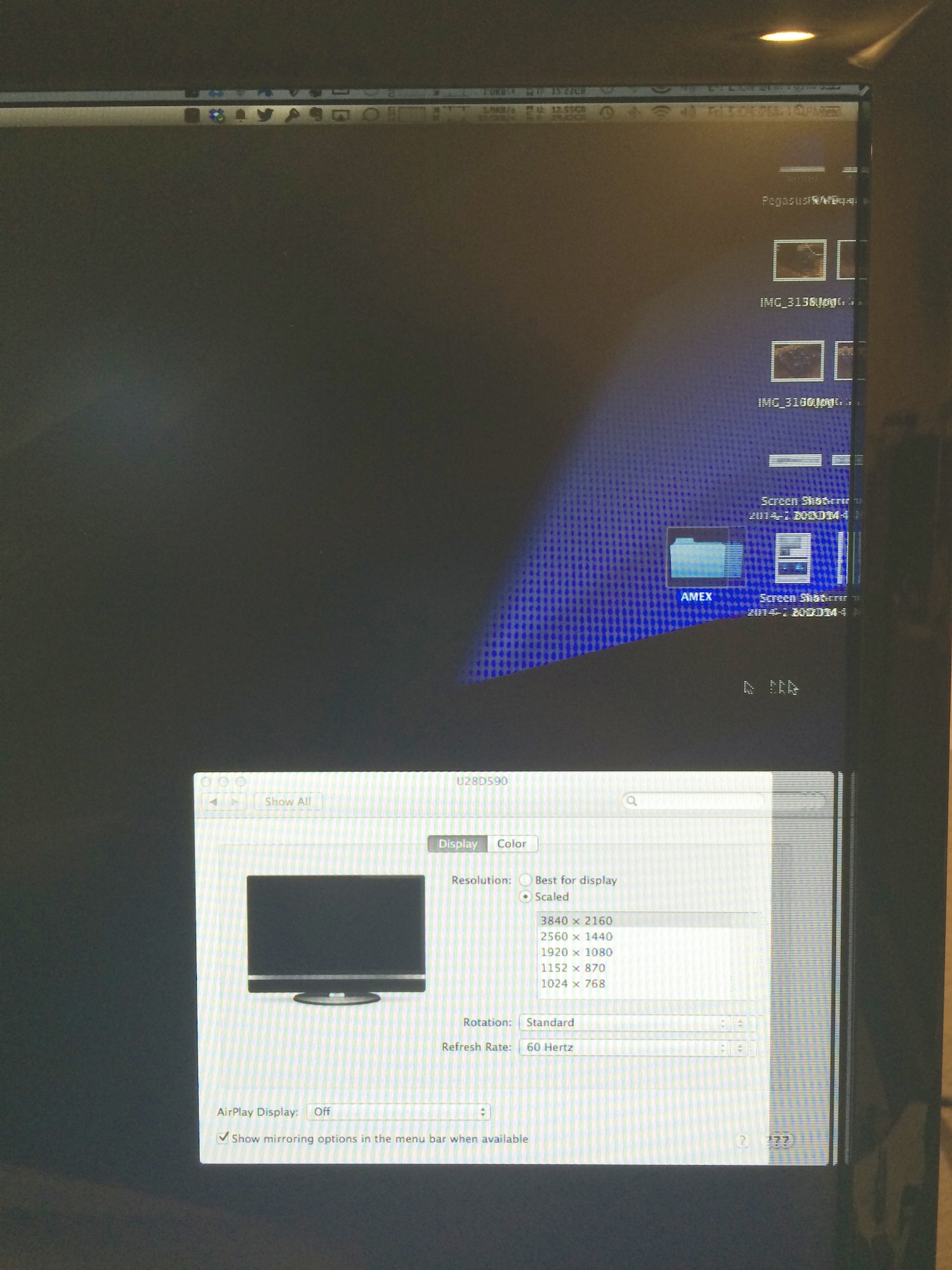 And there is another problem, when you use displayport connect to Mac Pro, when Mac Pro went to sleep you can't wake up monitor by using keyboard, it will stay dark unless you push the monitor switch again, but if you choose by using HDMI 30Hz mode it will be work fine.....