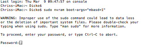IT WORKED! (Please note - I used the sudo nvram boot-args="-v mbasd=1"