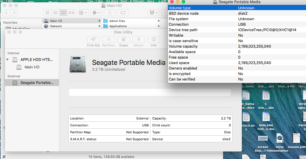 Then the Seagate won't show in Finder nor in disk utility. But it is showing in the System Report.