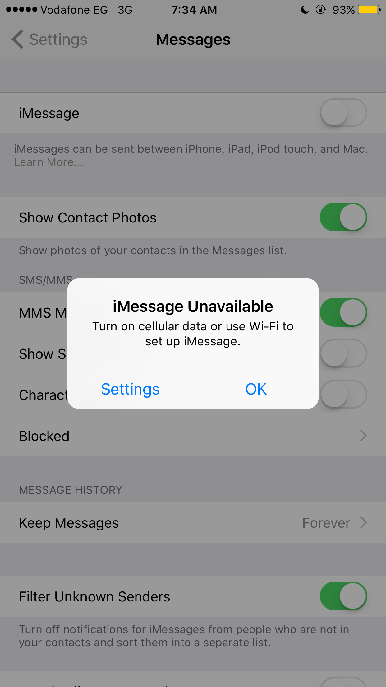 My iPhone wont let me turn on my iMessage, it keeps saying that I'm not connected to cellular data or wifi and my 3G is on, somebody please help.
