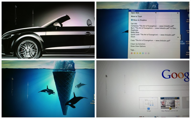 6) Notice Macbook Pro display flashes as it switches resolution and the mouse pointer remains the same size like the 1920x1080 resolution; also notice the weird graphic on the mouse pointer