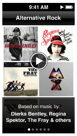 - Swipe left or right to browse the Genius Mixes. The dots at the bottom of the screen indicate how many Genius Mixes are on iPod nano.