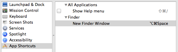 I have lost the ability to open a new finder window using the keyboard command: option command spacebar