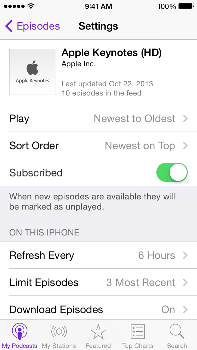 - Subscribed: When this is on, new episodes of this podcast will be marked as unplayed as they become available.
