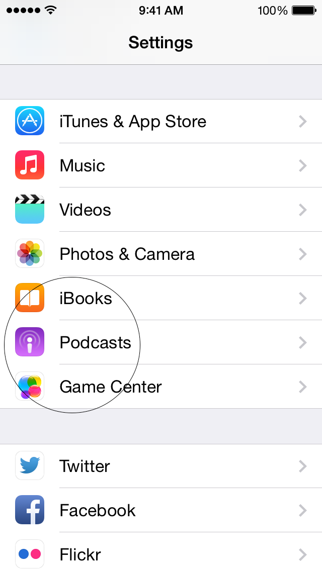 - Default settings: From your Home screen, tap Settings and then Podcasts. These settings are shared by all of your podcast subscriptions. These are known as default podcast settings.