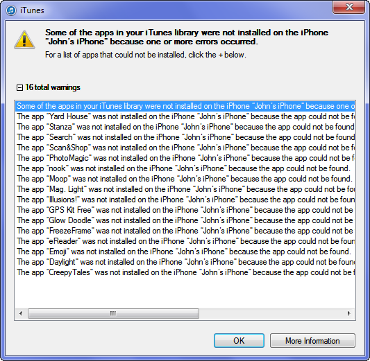 After upgrading to IOS 7, there are a nmber of apps that were removed, and not reinstalled (presumably they are not compatible with IOS 7, or no longer availabl). A few of these apps I was able to re-download and that solved the problem. However, there are a number of apps that are no longer available and iTunes keeps trying to install them. I have unchecked them in the app sync list, but iTunes ignores this.
