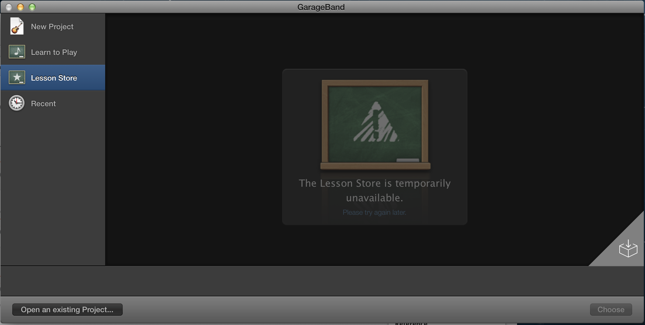 I have the same problem with "The Lesson Store is temporally unavailable". I have the same version of Garageband, v. 5.1 Garageband '09, on two computers. On my older Macbook os 10.8.5, with this version on Garageband, I get that error message when I try to download free lessons. On my newer Macbook Air, os 10.11.3, and Garageband v. 5.1 Garageband '09, I do not get that error message but I also do not have the room to download the free exercises. I would like to use the free lessons on my older Macbook.