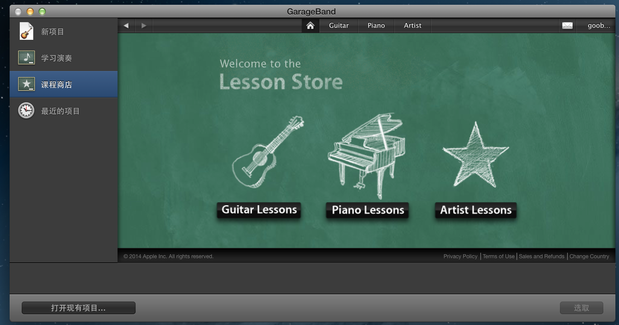 Then I quit garageband and reopened it ,the Lesson Store works fine now.I can go to Guitar,Piano and Artist Lessons...But I still need to download the lessons...I'm wondering what that 14Gb of content I installed was all about ...