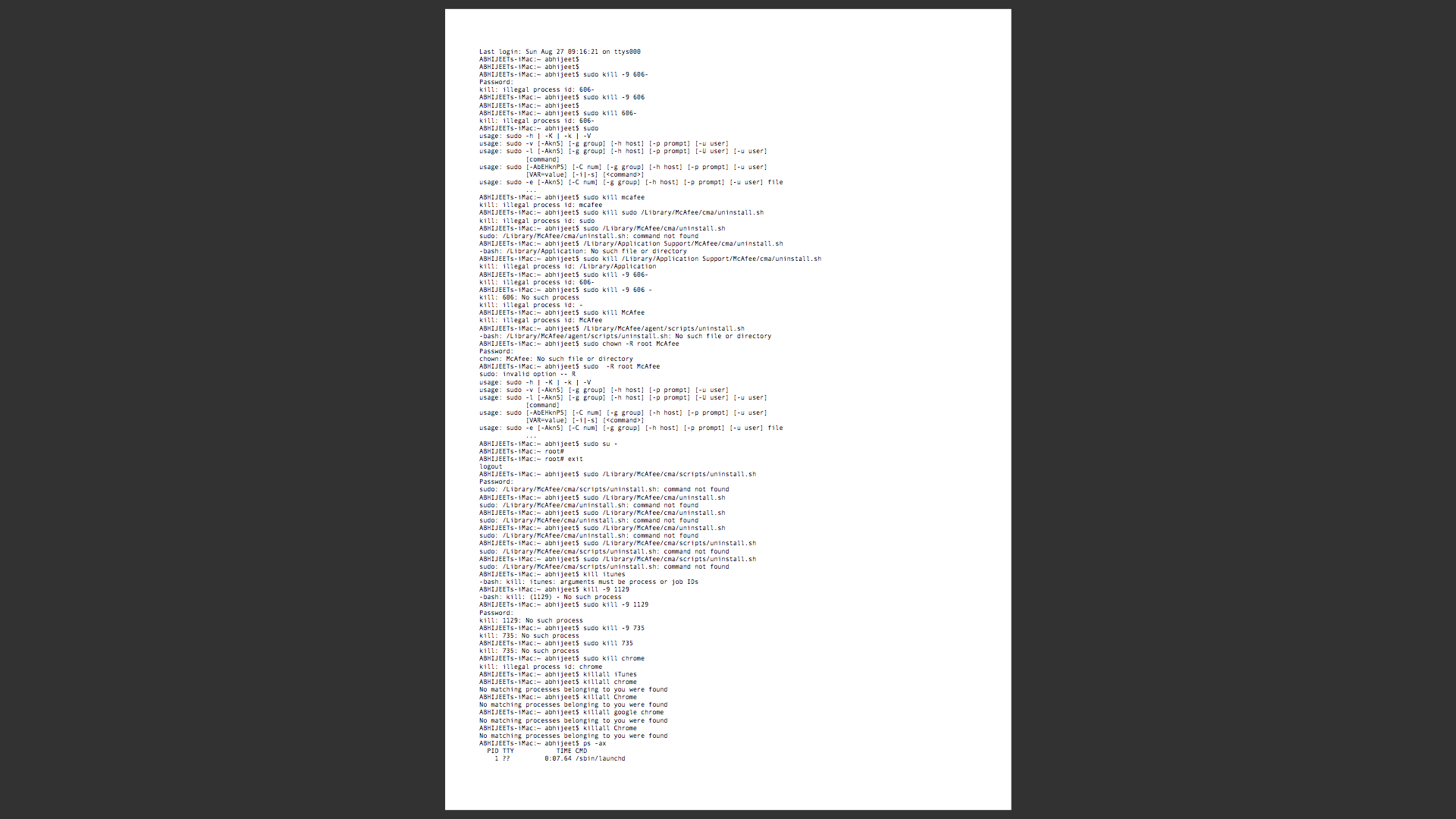 If the Terminal complains with an error message saying "No such file or directory" that means this script is no longer present. In this case, you will need to try reinstalling McAfee, then remove it using the newly-installed uninstaller, found in the Applications folder.