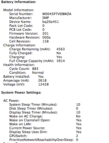 - But let us first ask to make a screen grab of the battery info: start SystemInformation (in Utilities), click "Power" in the left panel, and make a screen tab of the information after 'Charge Information:' and after Health Information:'