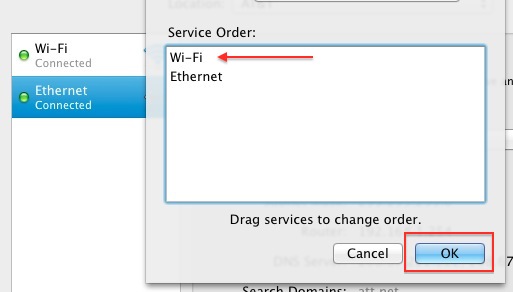 Then in the Service Order: pain, click hold and drag the Wi-Fi service to the top of the list and click OK.