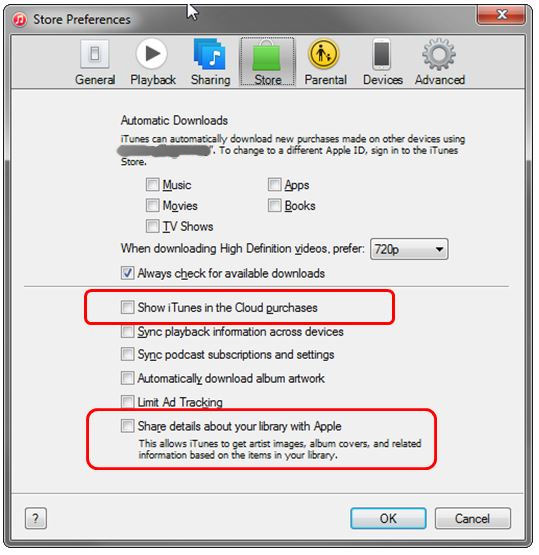 • Show iTunes in the Cloud purchases
