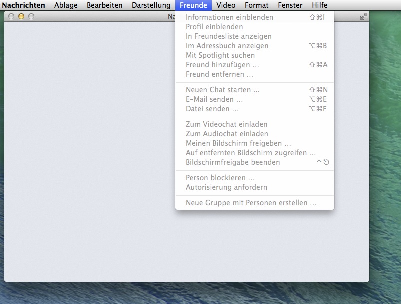 Reply to step 1: I had another user already activated. I created a new messenger account there and now the account window with the buddy list was accessible. I could not reach the preferences or any other menues (like before). So this only seems to work partially.
