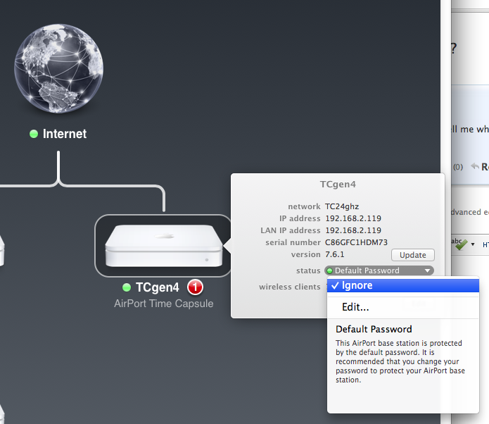 2. Run through the airport utility .. do not accept the Apple proffered base station or wireless names. Use simple short names, no spaces and pure alphanumeric. eg TCgen5 for base and TCwifi for wireless.