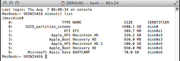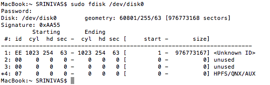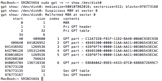 3. sudo dd if=/dev/rdisk0s6 count=1 2>/dev/null | hexdump -C