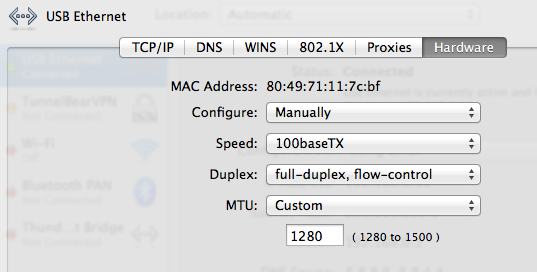 As an aside, I'd like to say that the TunnelBear support services were great! They gave me all the advance configuration settings I needed to make the L2TP configuration work. Still, the L2TP settings weren't enough to make the connection strong enough. So, I needed a new workaround that actually let's me manually route through the MacBook Air without using the "Share My Internet" connection. So here are the steps to make your TunnelBear Giant or Grizzly account work with an Apple TV abroad. Please note, I don't think these settings will work with a free account.