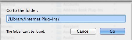 7. In the "Go to the folder:" field, put in the following path: /library/Internet Plug-ins/