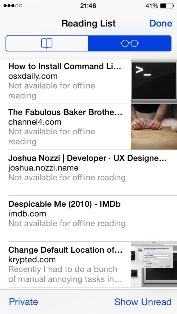 Also when you are offline (in Airplane Mode or whatever) and reading something from your Reading List if that content has a hyperlink and you tap it you will of course get a "no Internet connection" error msg as that referenced page wasn't downloaded to your Reading List. It would be like a room of mirrors to download all content to all hyperlinks contained in a page.