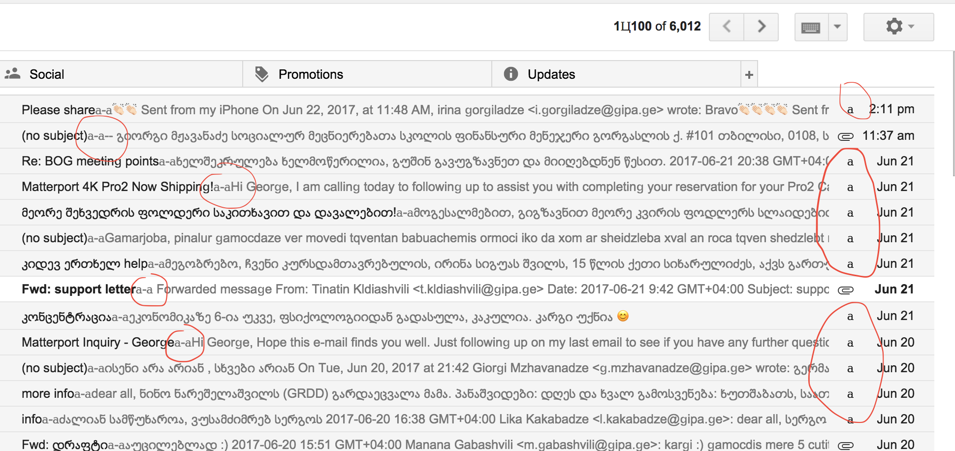 On my new mac book pro 13, while I'm typing in gmail, types "a" when I press the spacebar and then it disappear after typing another key, if press twice on spacebar "a" steel there. also I see letter "a" instead space in other mails and subjects sent to me, but senders don't.