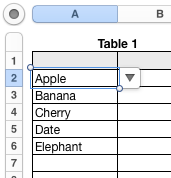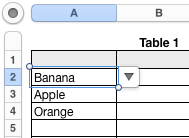 Part 2: If Part 1 was possible, is it also possible to have the pop-up menu update itself automatically? Let's say I add A4 = Pineapple to my table. Could I get my pop-up menu to automatically have "Pineapple" as an option or must I manually type it in as a selection?