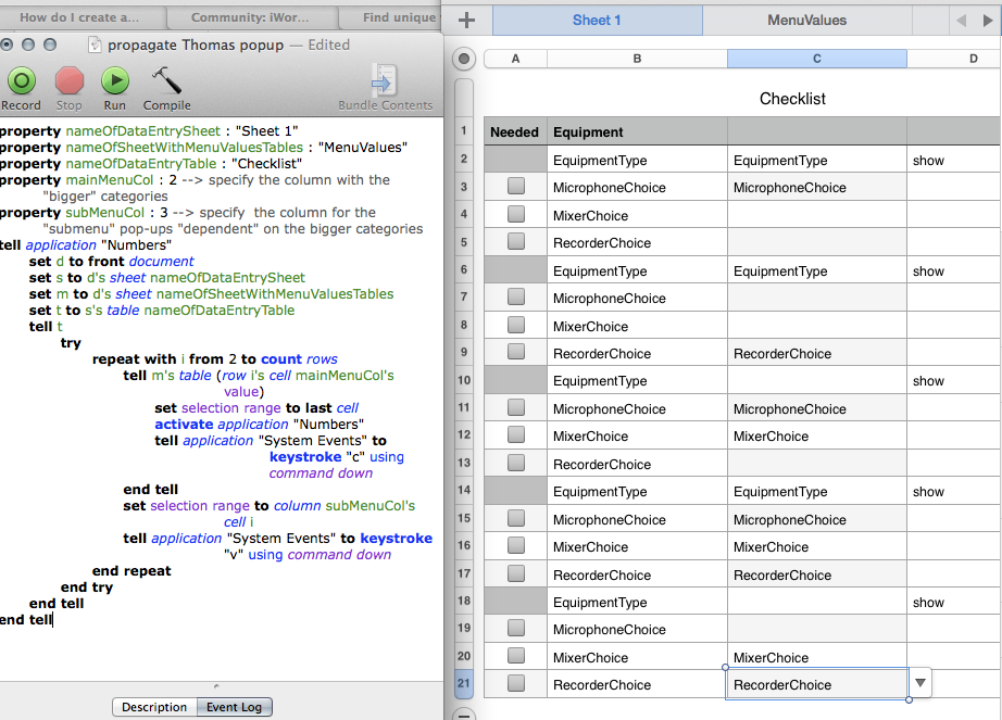 If I run it 4 times I will get all the popups in column C to propagate. Running Activity Monitor doesn't show anything getting overwhelmed. I am at a loss as to why this is (or isn't) happening. Any Ideas?