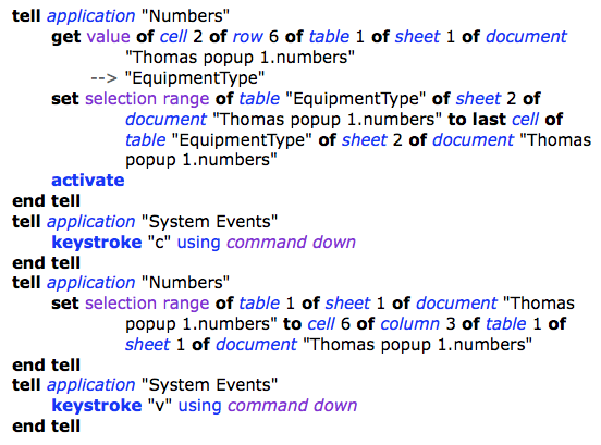 I tried your script with this table in Numbers 3.2 (and Numbers '09 was not open)