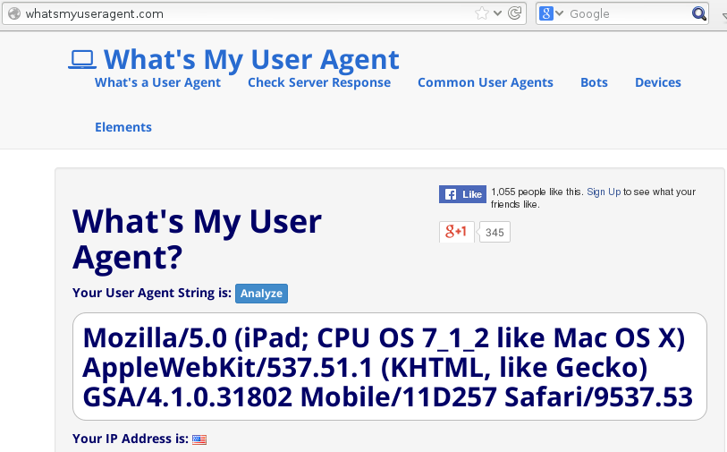 When I try from an iPad or iPhone the user agent string looks like:
