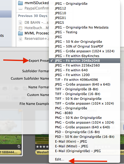 In the "Export" panel select "Edit".