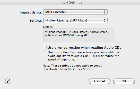 From the Import Using pop-up menu, choose the encoding format that you want to convert the song to, then click OK to save the settings.
